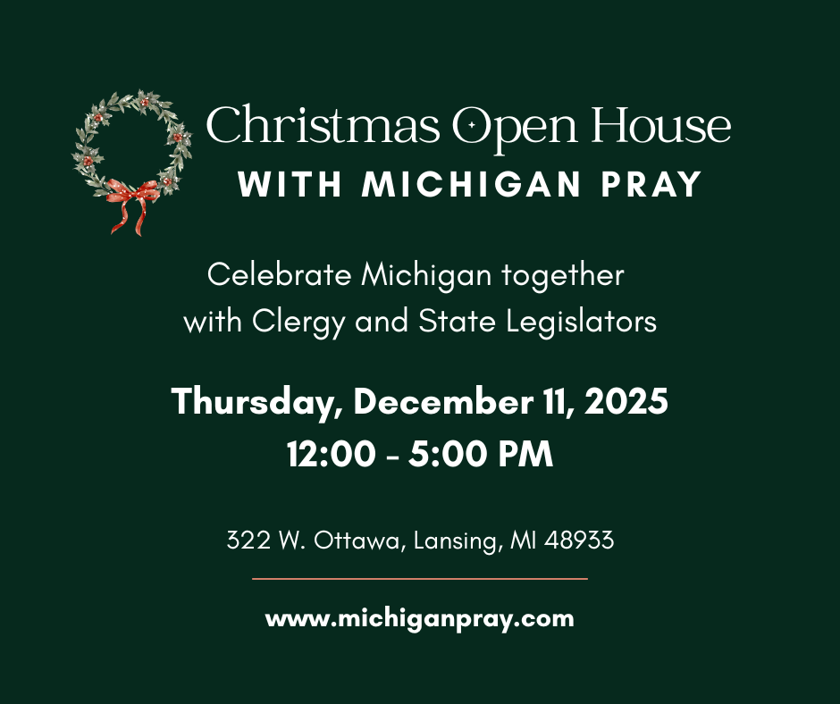 Christmas Party Open House Thursday, December 11, 2025 12:00 PM 5:00 PM Michigan Pray 322 West Ottawa Street Lansing, MI, 48933 United States (map) Google Calendar ICS